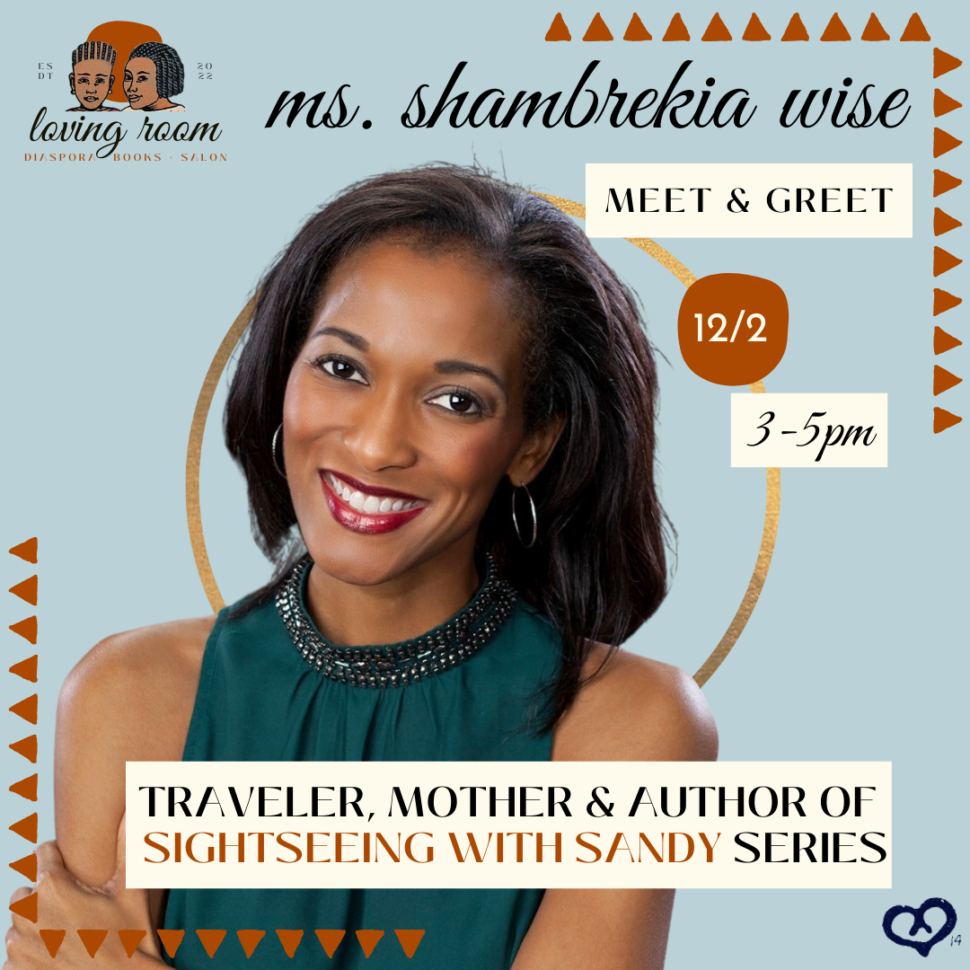 Greetings family! We are so excited for to welcome Shambrekia Wise— mother, world traveler, women in STEM leader, and author of the Sightseeing with Sandy children’s book Series— back to LOVING ROOM for a special meet and greet this Friday!